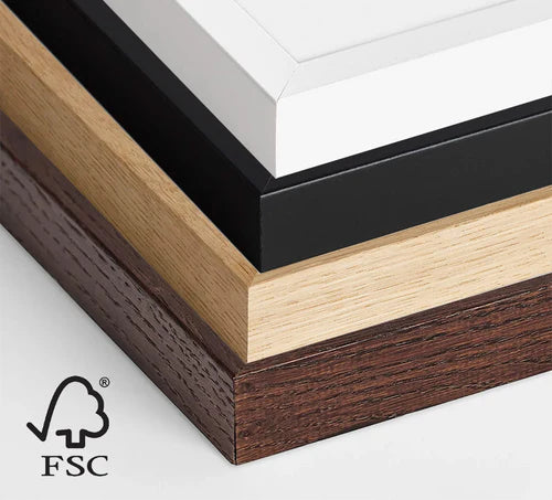 Unsere hochwertigen Rahmen sind in Schwarz, Weiß, Eiche, dunkler Eiche und goldfarbenem Aluminium erhältlich. Das Glas besteht aus Acryl, das sowohl leicht als auch langlebig ist. Alle Rahmen können sowohl vertikal als auch horizontal aufgehängt werden.