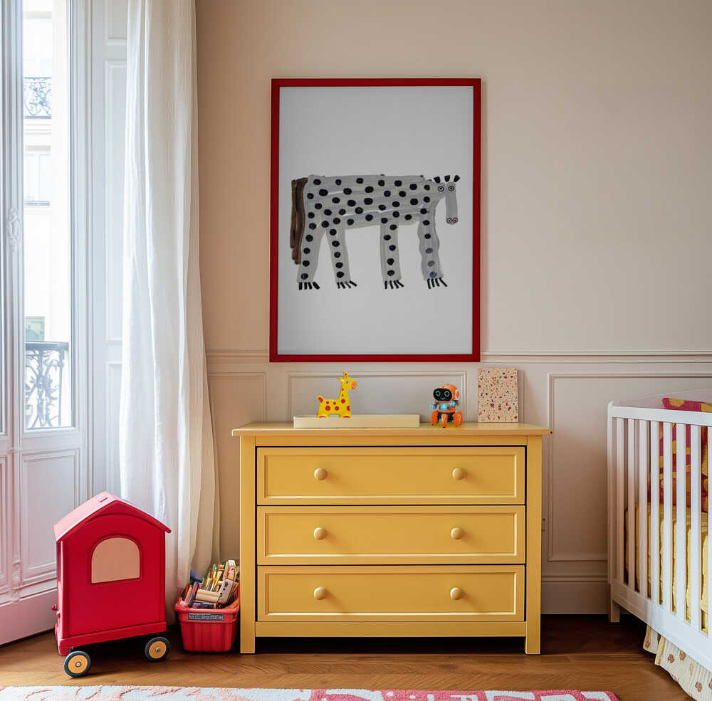 Bringe eine verspielte und originelle Note in dein Zuhause mit dieser charmanten Wandkunst, die ein handgemaltes, getupftes Wesen in Schwarz-, Weiß- und Brauntönen mit abstraktem Design zeigt. Das minimalistische Design und die harmonische Farbpalette schaffen eine ruhige und ausgewogene Atmosphäre, ohne den Raum zu überladen. Zeitlos und dennoch verspielt gestaltet, passt sie wunderbar über das Babybett, in die Leseecke oder an den Schreibtisch. Eine kreative und freundliche Wahl fürs Kinderzimmer, Wohnzimmer oder moderne Familienräume – perfekt kombinierbar mit skandinavischem Einrichtungsstil und Galeriewänden. Gedruckt auf mattem Papier in Museumsqualität, das Farben und Details über Jahre hinweg bewahrt.